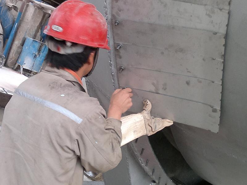 宫静法兰基本贴合,(具体尺寸必须现场勘察及测量及调整冷风套通心度)从而形成两道迷宫。密封罩外端立法兰焊接锥体法兰安装固定耐热钢鱼鳞板。气旋密封工作原理:通过鼓风机从进风口进风后,从出风口吹入冷风套与筒体之间,起到冷却冷风套的作用。气流返回后顺着喇叭口吹向密封罩顶
