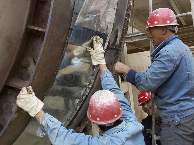 自公司成立后,在建材、冶金、化工、危废处理等行业,根据客户要求设计制作不同方式不同材质的密封,得到用户的一致好评。负压生产的窑密封可以根据生产工艺采用多层鳞片密封、迷宫+多层鳞片密封、非接触式气旋式密封(气密)、如物料不能与金属接触,以上摩擦会产生金属粉末是不可以使用。我公司会推荐使用非金属耐磨块密封方式密封。如果正压生产的工艺,密封难度较大,如还原类窑、热解窑、蒸馏窑炉等。生产工艺采用正压生产,窑内向外喷吹物料及气体。