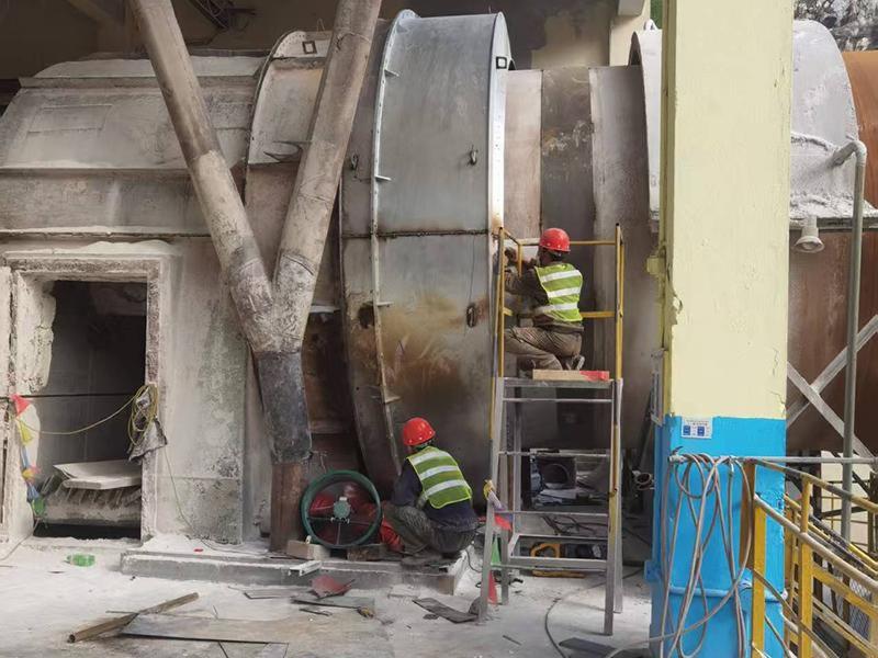 新型气旋式密封装置:针对鱼鳞片密封出现的问题,我公司专业技术人员经过多年观察及实验,(感谢厂家的大力配合)研制成功窑头气旋式密封。密封装置包含进风口、密封罩、风箱、风道、出风口、迷宫静法兰、迷宫动法兰、支架、锥体法兰、密封板、漏灰斗,观察孔等组成。 在密封罩内与冷风套之间安装风箱,冷风套在密封罩与风箱中间,